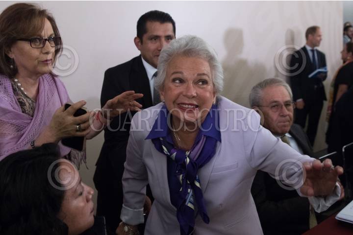 CIUDAD DE MÉXICO, 30ABRIL2019.- La senadora Martha Lucía Micher y Olga Sánchez Cordero, secretaria de Gobernación, durante la ceremonia de instalación del Sistema de Protección Integral de los Derechos de las Niñas, Niños, y Adolescentes, realizado en las instalaciones de la Segob. FOTO: MOISÉS PABLO /CUARTOSCURO.COM
