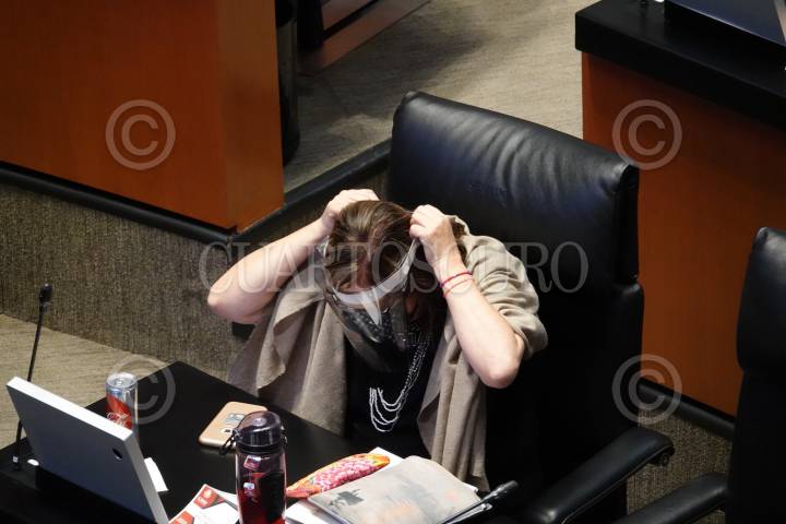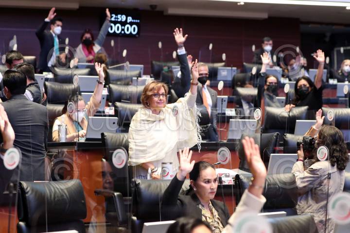 CIUDAD DE MÉXICO, 25OCTUBRE2023.- Martha Lucia Mícher, senadora de Morena, emite su voto durante la sesión en la que se aprobó desaparecion de los fideicomisos del Poder Judicial de la Federación en el Senado. FOTO: CUARTOSCURO.COM