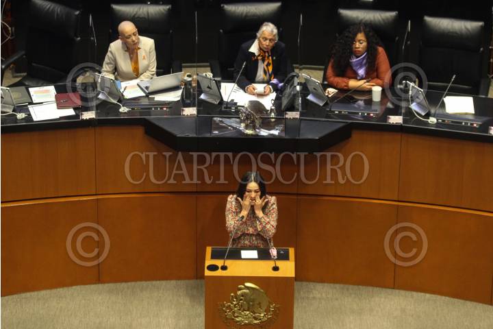 La senadora de Morena, Martha Lucía Mícher, durante la sesión en la Cámara de Senadores.