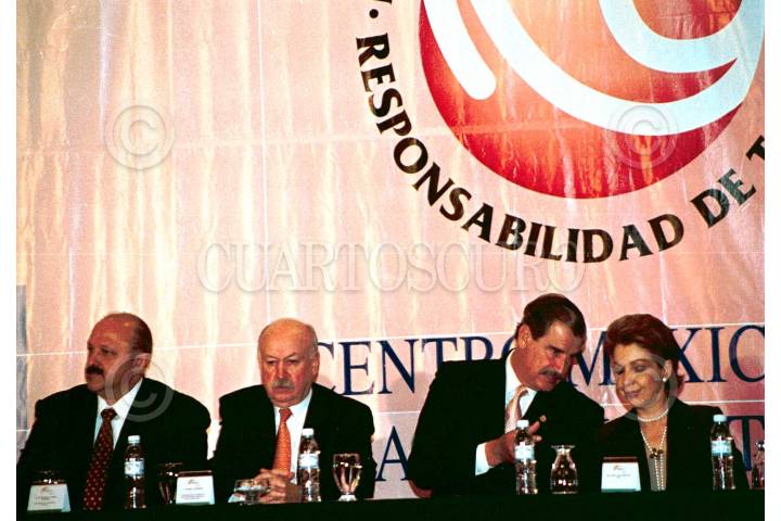 Vicente Fox, presidente de México y su esposa Martha Sagahún de Fox, junto el secretario de Educación Pública, Reyes Tamez, y C. Bruno J. Newman, presidente de la Centro Mexicano para la filantropia, durante la VI Reunión Anual del Centro Mexicano para la Filantropia. FOTO: Eunce Adorno/CUARTOSCURO.COM