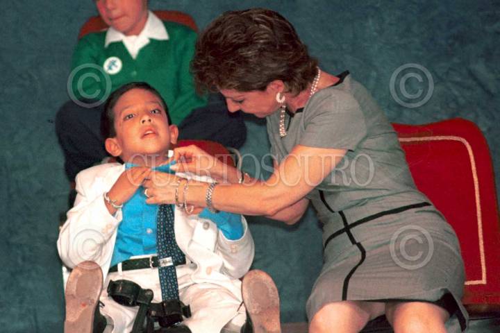 La primera dama Martha Sahagún de Fox le acomoda la corbata al niño Angel Gabriel Peralta Fonseca, quien habló, en nombre de los niños y niñas durante la Instalación del Consejo Nacional para la Infancia y la Adolescencia. FOTO:Oswaldo Ramírez/CUARTOSCURO.COM