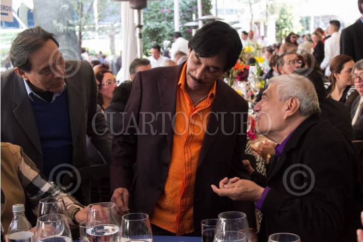 CIUDAD DE MÉXICO, 15ENERO2018.- Con motivo del Día del Compositor, celebración que conmemora la fundación de la Sociedad de Autores y Compositores, se realizó una comida y ambientada con música en vivo para los integrantes del gremio. En la imagen, Martín Urieta, compositor mexicano; Armando Manzanero, presidente de la Sociedad de Autores y Compositores de México (SACM), y Víctor Félix Flores Morales, dirigente del sindicato de Ferrocarrileros. FOTO: GALO CAÑAS /CUARTOSCURO.COM