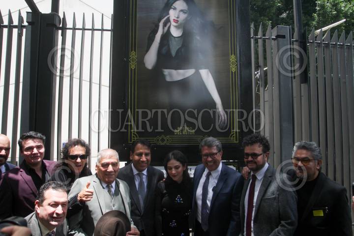 Los senadores Eduardo Ramírez y Ricardo Monreal acompañados de los autores Alex Lora, Martín Urieta, Paty Cantú, Alma Domínguez, Alex Syntec, José Alfredo Jiménez, entre otros durante la inauguración de la exposición fotográfica "El rostro del Autor", en el Senado de la República