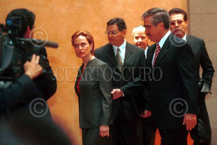 Patricio Martínez, Gobernador del Estado de Chihuahua y su esposa Patricia Ramos, llegan al salón Adolfo López Mateos de Los Pinos donde el gobernador ofreció una conferencia luego de reunirse con el presidente Fox. FOTO: Pedro Mera/CUARTOSCURO.COM