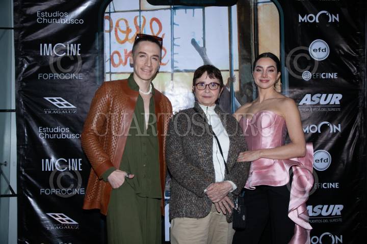 CIUDAD DE MÉXICO, 15DICIEMBRE2023. Norman Delgadillo, Maryse Sistach y Gimena Gómez durante la conferencia de prensa con parte del elenco de la película “Pole Dance”, teniendo su función de estreno en la Cineteca Nacional. FOTO: EDGAR NEGRETE LIRA/CUARTOSCURO.COM