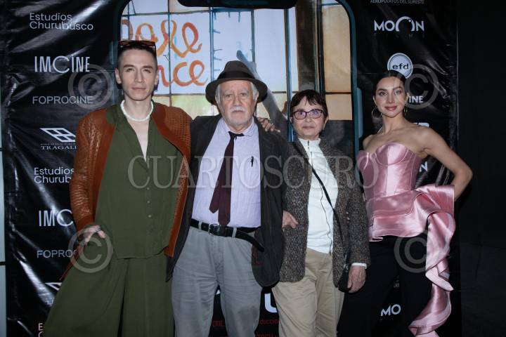 CIUDAD DE MÉXICO, 15DICIEMBRE2023. Norman Delgadillo, José Buil, Maryse Sistach y Gimena Gómez durante la conferencia de prensa con parte del elenco de la película “Pole Dance”, teniendo su función de estreno en la Cineteca Nacional. FOTO: EDGAR NEGRETE LIRA/CUARTOSCURO.COM