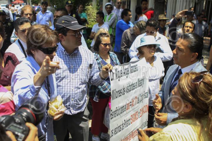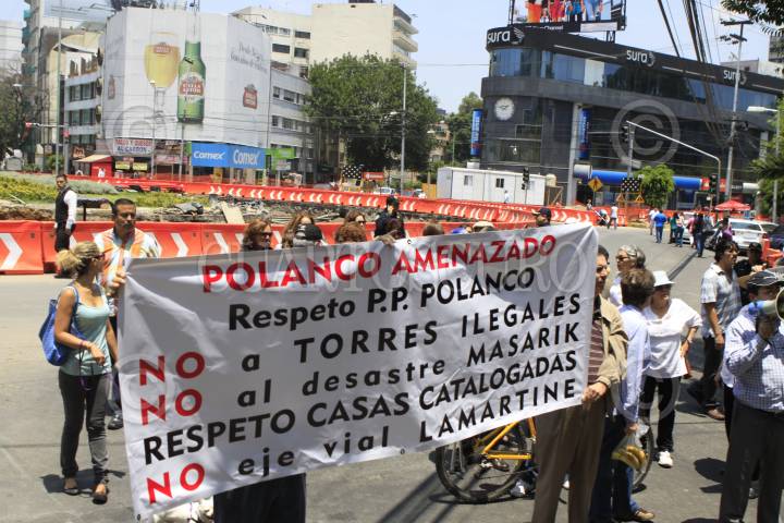 MÉXICO, D.F., 27AGOSTO2014.- Vecinos de Polanco se manifestaron en la calle de Aristóteles y Presidente Masaryk por las obras de remodelación que se realizan por esta última vialidad, ya que consideran que no traerán ningún beneficio y al contrario se esta afectado a los comercios establecidos a demás de que se están talando árboles sanos, los inconformes bloquearon y marcharon por calle aledañas de este punto, lo que provocó la molestia de varios conductores que se bajaron de sus autos para hacerse de palabras con los vecinos. Humberto Morgan autoridad de la delegación Miguel Hidalgo intentó dialogar pero fue rechazado por los polanquenses. FOTO: MOISÉS PABLO /CUARTOSCURO.COM