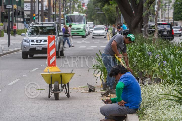 MÉXICO, D.F., 15JUNIO2015.- Trabajadores colocan plantas sobre la avenida Masaryk, en Polanco, la cual terminó recientemente de ser remodelada. FOTO: ISAAC ESQUIVEL /CUARTOSCURO.COM