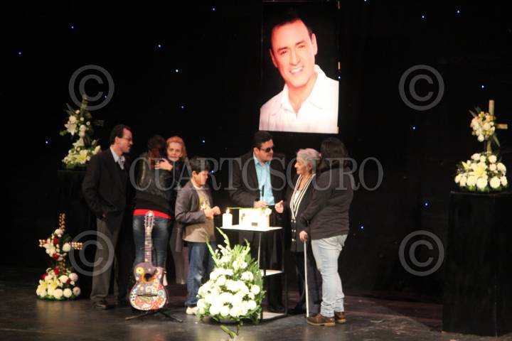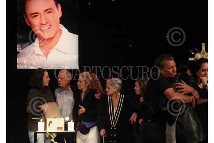 MÉXICO D.F; 03MAYO2014.- Amigos y familiares velan en el teatro Telmex los restos del actor y escritor Luis Ernesto Cano, quien fue encontrado muerto al medio día de ayer en su departamento de la Ciudad de México, Ernesto Cano fue conocido como el tercer Mascabrother por su cercanía con los comediantes Fredy y German Ortega. FOTO: SAÚL LÓPEZ /CUARTOSCURO.COM