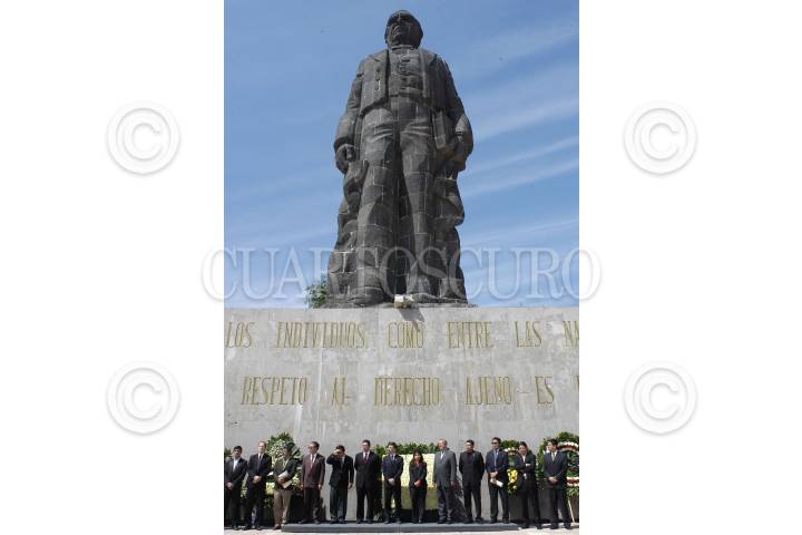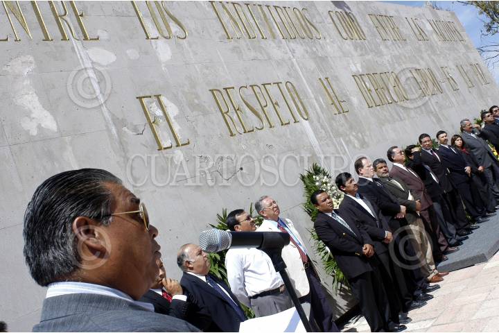 QUERETARO, QUERETARO, 21MARZO2006.- Integrantes de la logia Masona queretana, montaron una guardia de honor en el monumento a Benito Juarez en el Bicentenario de su Natalicio. FOTO: Fabiola Mapy/CUARTOSCURO.COM