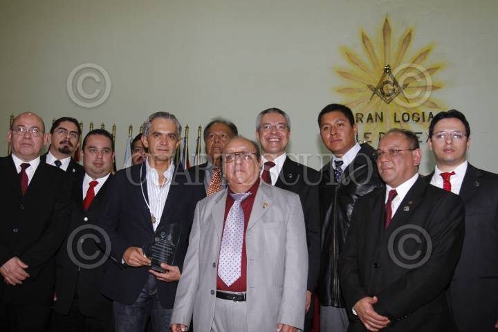 MÉXICO, D.F., 21MARZO2012.- Miguel Ángel Mancera, precandidato del PRD a la jefatura de Gobierno del DF, recibe una figura de Elefante, que es el grado decimoquinto entre la masoneria. Luego de reunirse con diversas lógias masonicas de la Ciudad de México en el marco de la conmemoración del natalicio de Benito Juárez. FOTO: JUAN PABLO ZAMORA /CUARTOSCURO.COM