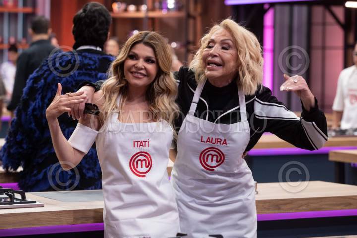 CIUDAD DE MÉXICO, 16FEBRERO2024. Itatí Cantoral y Laura Bozzo durante la presentación de las celebridades que participarán en la cuarta temporada del reality show “Master Chef Celebrity” de TV Azteca. FOTO: EDGAR NEGRETE LIRA/CUARTOSCURO.COM