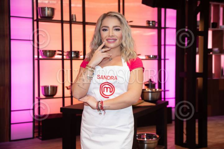 CIUDAD DE MÉXICO, 16FEBRERO2024. Sandra Itzel durante la presentación de las celebridades que participarán en la cuarta temporada del reality show “Master Chef Celebrity” de TV Azteca. FOTO: EDGAR NEGRETE LIRA/CUARTOSCURO.COM