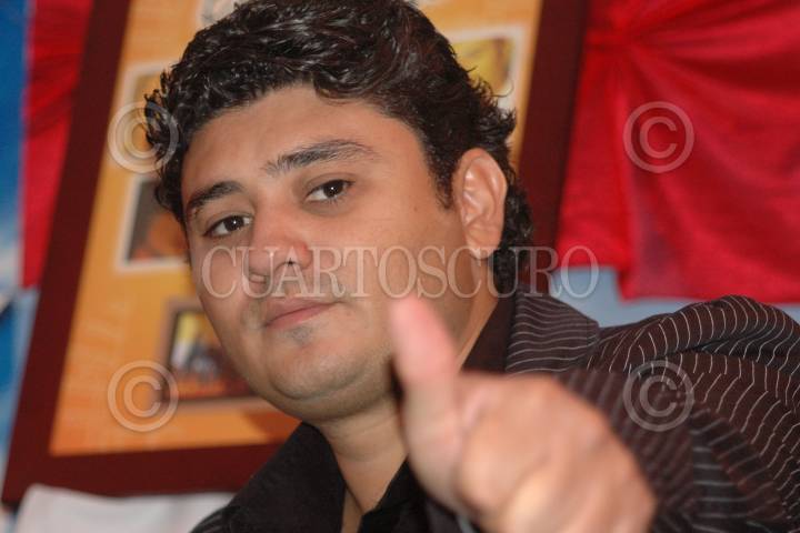 MEXICO, D.F. 27JULIO2005.- Jorge Martínez, vocalista del grupo Elefante, durante la conferencia de prensa a los medios de comunicación, en una casa disquera de Polanco. FOTO: Osvaldo Aguilar/CUARTOSCURO.COM