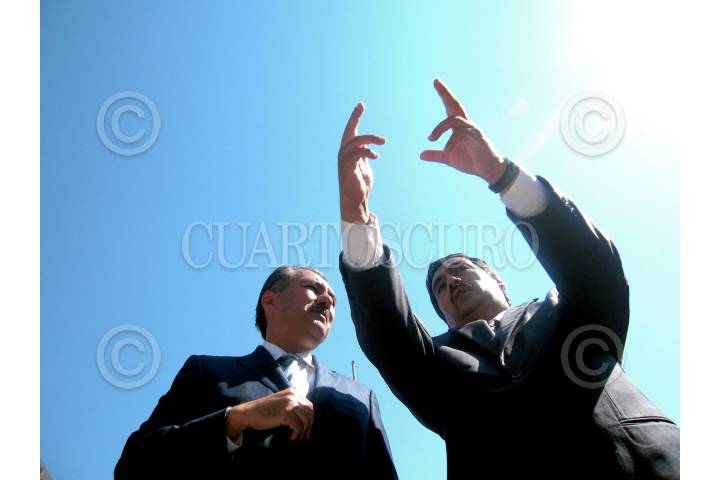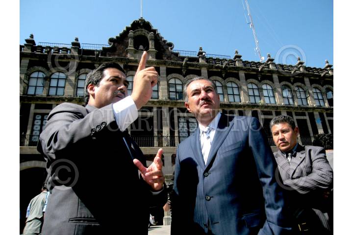 CUERNAVACA, MORELOS, 12FEBRERO2009.- Sergio Álvarez Mata, quien aparece en la imagen de lado izquierdo y acompañado por Marco Antonio Adame, gobernador de la entidad, se separó del cargo de Secretario de Gobierno, para buscar su registro como precandidato del Partido Acción Nacional a la presidencia municipal de Cuernavaca. El Comité Directivo Estatal del Partido Acción Nación Nacional publicará este día la convocatoria para la elección de su candidato a presidente municipal de Cuernavaca. FOTO: LUIS GIRÓN/CUARTOSCURO.COM