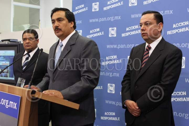 MÉXICO D.F., 24MARZO2009.- Daniel Chowell, candidato a la presidencia municipal de Guanajuto, Sergio Álvarez Mata, candidato a la presidencia municipal de Cuernavaca y Germán Martínez Cazares, dirigente nacional panista, ofrecieron una conferencia de prensa en su sede central. FOTO: MOISÉS PABLO/CUARTOSCURO.COM