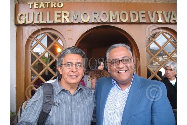 PACHUCA, HIDALGO, 24OCTUBRE2009.- Francisco Mata Rosas, fotografo mexicano y Juan Carlos Váldez, Director del Sistema Nacional de Fototecas, durante el Décimo Encuentro Nacional de Fototecas, se inauguró el día de ayer en la galería Leo Acosta, la exposición: “Migraciones” de Antonio Turok, Eniac Martínez, Byron Brauchly y Francisco Mata Rosas, que estará en exposición hasta el día 23 de noviembre. FOTO: MARIA DI PAOLA BLUM/CUARTOSCURO.COM
