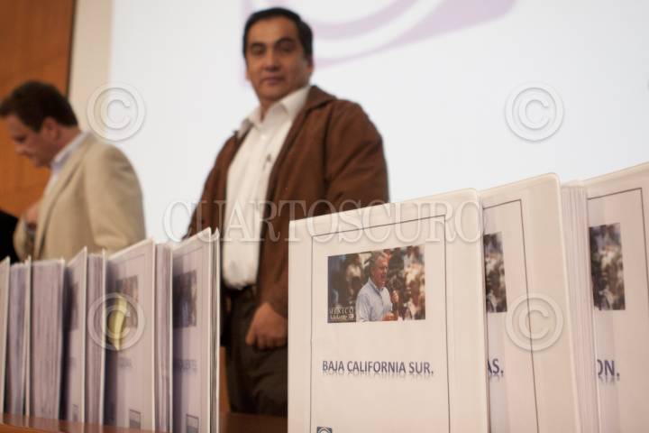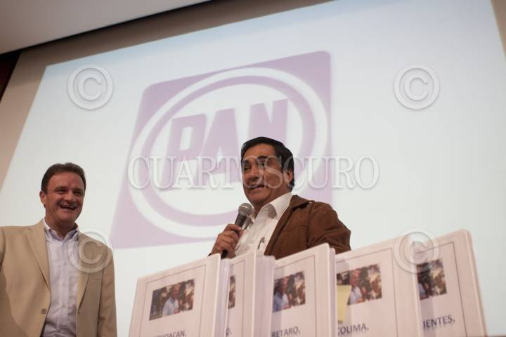 MÉXICO, D.F., 03DICIEMBRE2011.- José Espina Von Roehrich, presidente de la Comisión Nacional de Elecciones del PAN, recibió las firmas de apoyo para resolver su registro como precandidatos ante la Comisión Nacional de Elección del PAN. En la imagen el senador Sergio Álvarez Mata entregó las carpetas de firmas de Santiago Creel. FOTO: MOISÉS PABLO/CUARTOSCURO.COM