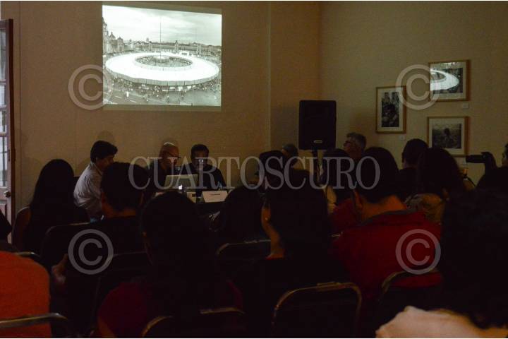 CIUDAD DE MÉXICO, 01JUNIO2017.-Los fotógrafos: Alfredo Estrella Ayala, Víctor Mendiola, Federico Gama, Francisco Mata Rosas y Keith Dannemiller, ofrecieron una charla en el Museo Archivo de la Fotografía con la finalidad de mostrar su trabajo fotoperiodístico durante sus años de trabajo, el tema de la conferencia fue "La plaza pública como ente de transformación social". FOTO: SELENE PACHECO /CUARTOSCURO.COM