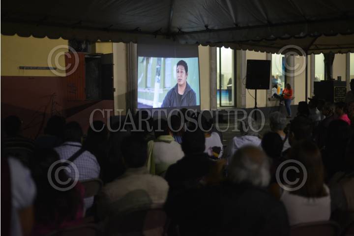 XALAPA, VERACRUZ, 7JUNIO2018.- Proyección del documental "No se mata la verdad" de Temoris Greko en la plaza Sebastian Lerdo en el marco del "día de la libertad de expresión". FOTO: ALBERTO ROA /CUARTOSCURO.COM