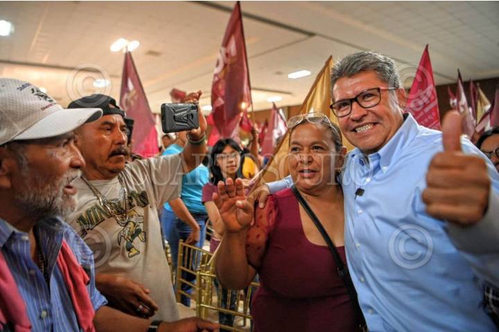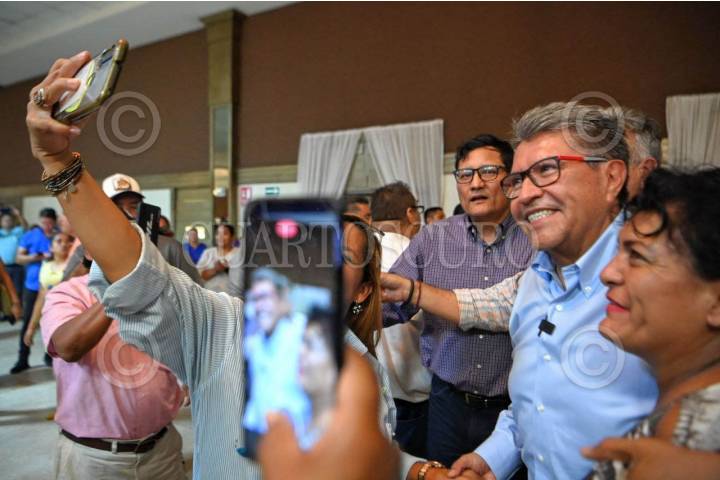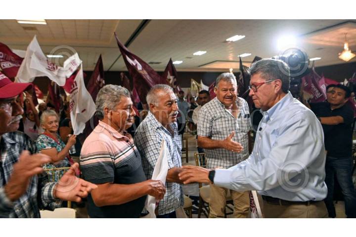 Ricardo Monreal, aspirante a la coordinación nacional de los comités de defensa de la cuarta transformación de Morena, durante la asamblea informativa de hoy miércoles, en el municipio de Matamoros, Tamaulipas.