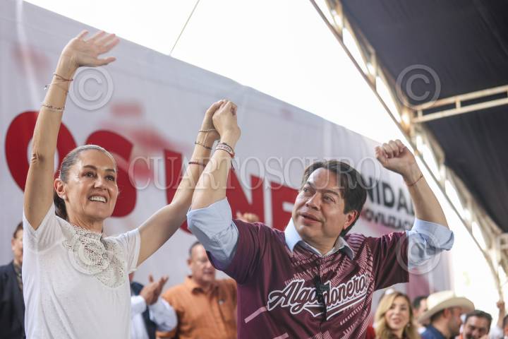 MATAMOROS, COAHUILA, 11OCTUBRE2023.- Claudia Sheinbaum, aspirante a la candidatura presidencial de Morena, se reunió con simpatizantes en el Parque de Beisbol "Horacio Piña", donde se dieron cita alrededor de dos mil personas. La acompañaron el senador Manuel Velasco y Mario delgado, dirigente nacional de Morena. FOTO: ALEJANDRO RODRÍGUEZ/CUARTOSCURO.COM