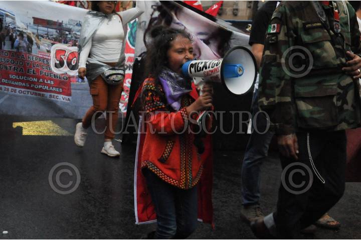 CIUDAD DE MÉXICO, 02OCTUBRE2023. - Una niña con un megáfono marcha en el aniversario 55 de la matanza de Tlatelolco. FOTO: DANIEL AUGUSTO /CUARTOSCURO.COM