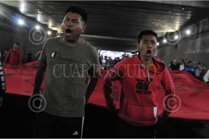 CIUDAD DE MÉXICO, 02OCTUBRE2023. - Dos normalistas marchan en el aniversario 55 de la matanza de Tlatelolco. FOTO: DANIEL AUGUSTO /CUARTOSCURO.COM