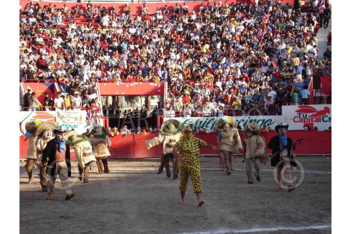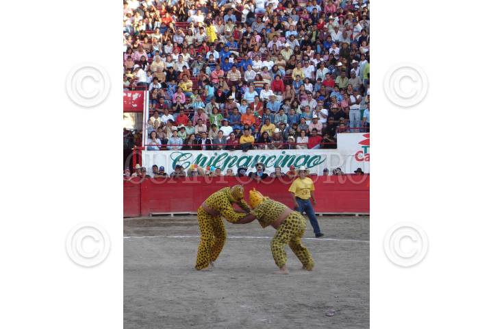 CHILPANCINGO, GUERRERO. 27DICIEMBRE2007.- Se celebró el tradicional "Porrazo del Tigre" donde participan los 5 barrios tradicionales de la capital del estado, en plaza de toros "Belisario Arteaga", dentro de los festejos de la 182 edicion de la Feria de San Mateo, Navidad y Año Nuevo, resultando ganador el tigre representante del barrio de San Francisco. FOTO: OSCAR ALVARADO/CUARTOSCURO.COM