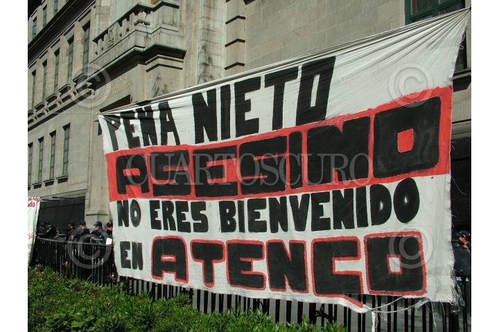 MÉXICO, D.F., 11FEBRERO2009.- Integrantes de FPDT de San Salvador Atenco se manifiestan mientras los ministros de la SCJN discuten la participación de los funcionarios involucrados en la irrupción policíaca los días 3 y 4 de mayo de 2006 en los municipios de Texcoco y San Salvador Atenco. FOTO: MARIO NULO/CUARTOSCURO.COM