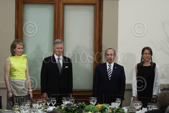 MÉXICO D.F., 23MARZO2009.- Felipe Calderón Hinojosa Presidente de México encabezo esta noche una cena de honor a los Principes de Bélgica Phillipe y Mathilde con motivo de su visita a nuestro país FOTO: SÁSHENKA GUTIERREZ/CUARTOSCURO.COM