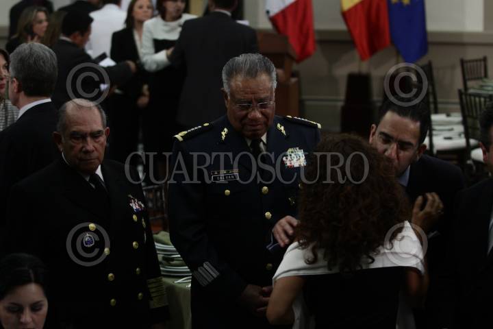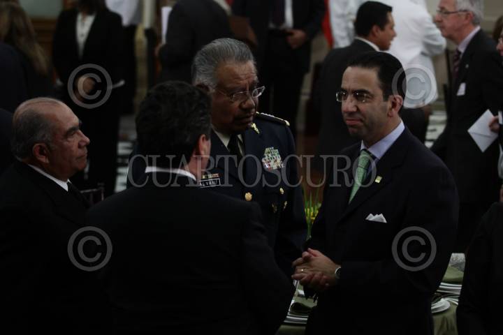 MÉXICO D.F., 23MARZO2009.- Guillermo Galvan Galvan Secretario de Defensa Nacional, El Almirante Francisco Saynes Secretario de Marina, Eduardo Medina Mora Procurador General de la República previó a la cena que Felipe Calderón Hinojosa Presidente de México encabezo esta noche en honor a los Principes de Bélgica Phill1pe y Mathilde con motivo de su visita a nuestro país FOTO: SÁSHENKA GUTIERREZ/CUARTOSCURO.COM