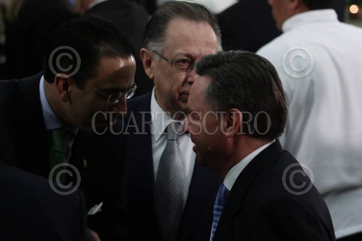 MÉXICO D.F., 23MARZO2009.- Guillermo Galvan Galvan Secretario de Defensa Nacional, El Almirante Francisco Saynes Secretario de Marina, y Javier Lozano Secretario del Trabajo previó a la cena que Felipe Calderón Hinojosa Presidente de México encabezo esta noche en honor a los Principes de Bélgica Phillipe y Mathilde con motivo de su visita a nuestro país FOTO: SÁSHENKA GUTIERREZ/CUARTOSCURO.COM