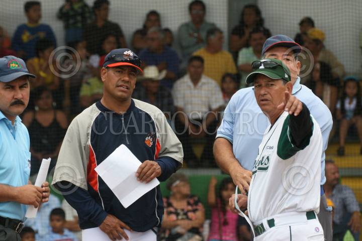MACUSPANA, TABASCO, 28FEBRERO2010.- Los manager de las novenas; Gustavo Llenas de Olmecas de Tabasco y Matias Carrillo por Tigres de Quintana Roo. FOTO: MARCO POLO GUZMÁN HERNÁNDEZ/CUARTOSCURO.COM