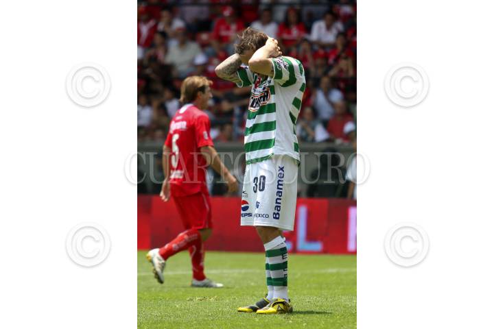 TOLUCA, ESTADO DE MÉXICO, 23MAYO2010.- Matías Vouso de los Guereros del Santos Laguna, se lamenta durante el partido de final en contra de los Diablos del Toluca del torneo Bicentenario que se realizo en el Estadio Nemesio Diez, ganando la gran final en serie de penales los Diablos 4 goles a 3. FOTO: RODOLFO ANGULO/CUARTOSCURO.COM