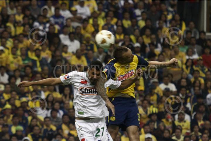 MEXICO, D.F., 06FEBRERO2011.- Matias Vouso de las Aguilas del America, intenta rematar el balón durante el partido en contra de los Gallos Blancos del Queretaro en el encuentro del torneo Clausura 2011 que se realizo en el estadio Azteca. Las Aguilas ganaron 3 goles a 1. FOTO: RODOLFO ANGULO/CUARTOSCURO.COM
