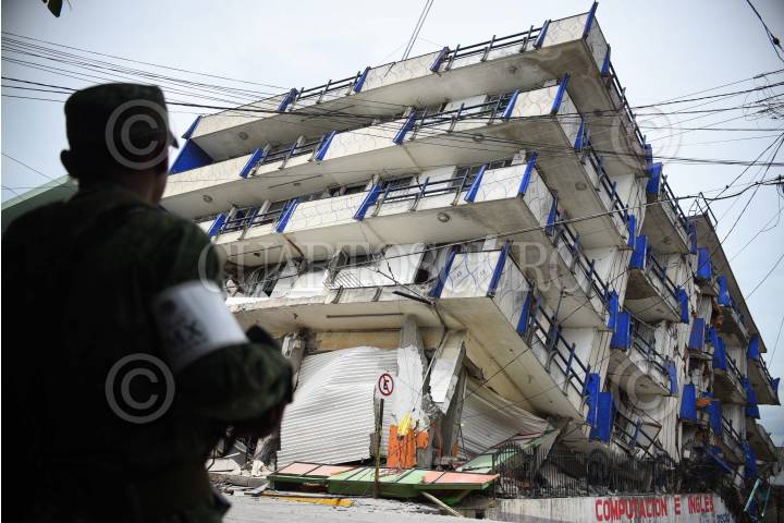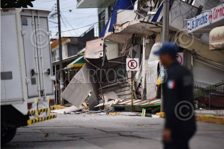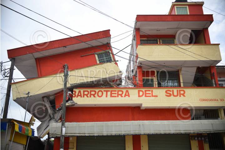 MATÍAS ROMERO, OAXACA, 08SEPTIEMBRE2017.- Hotel sensación y abarrotera del sur fueron los edificios que quedaron destrozados en su totalidad debido al terremoto de 8.2 grados que se registró el día de ayer al filo de la media noche. FOTO: ÁNGEL HERNÁNDEZ /CUARTOSCURO.COM