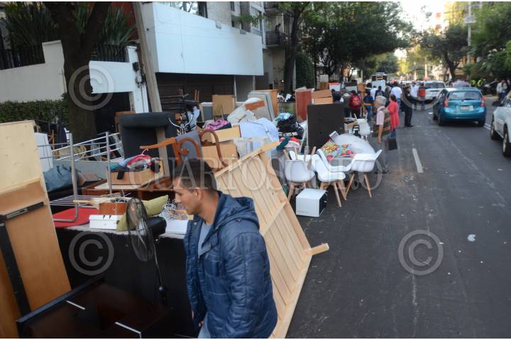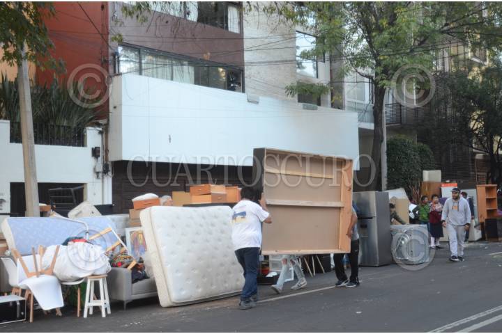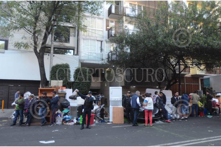 CIUDAD DE MÉXICO, 14OCTUBRE2019.- Un total de 17 familias fueron desalojadas esta mañana de un inmueble ubicado en avenida Coyoacán y Matías Romero, colonia Del Valle, donde la policía capitalina vigila para evitar el robo de pertenencias. La Secretaría de Seguridad Ciudadana de la Ciudad de México informó debido a este desalojo, se implementó un operativo de seguridad y vialidad en las inmediaciones del inmueble ubicado en la alcaldía Benito Juárez. De acuerdo a un reporte de la dependencia capitalina, estas acciones obedecen a una orden judicial y se trata de 17 departamentos donde vivían aproximadamente 50 personas. FOTO: ARMANDO MONROY /CUARTOSCURO.COM