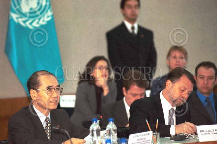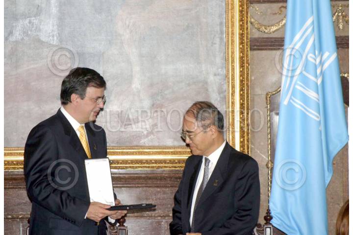 Koichiro Matsuura, presidente de la Unesco y el Secretario de Relaciones Exteriores Jorge G. Castañeda, en la inauguración de la Conferencia Regional sobre la Educación en Derechos Humanos en América Latina y el Caribe. FOTO: Victoria Valtierra/CUARTOSCURO.COM