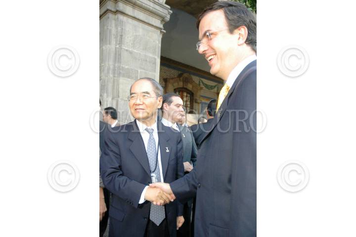 MEXICO, D.F., 21SEPTIEMBRE2007.-Marcelo Ebrad entrega las "llaves de la ciudad" al huesped distinguido Dr. Koichiro Matsuura Director General de la UNESCO. FOTO:IVAN MENDEZ/CUARTOSCURO.COM