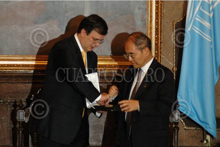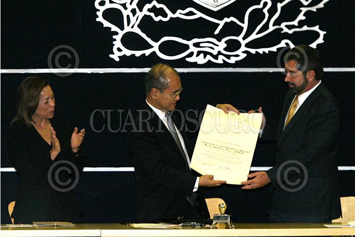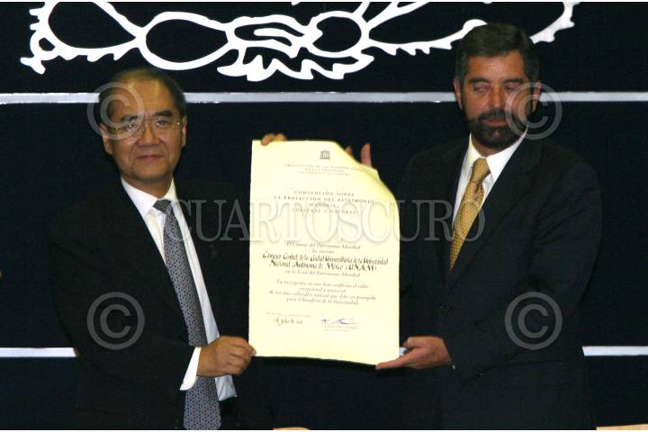 MÉXICO, D.F., 21SEPTIEMBRE2007.- Koichiro Matsuura, director general de la UNESCO entregó ésta tarde el pergamino oficial que reconoce a Ciudad Universitaria como Patrimonio Cultural de la Humanidad. FOTO: SAÚL LÓPEZ/CUARTOSCURO.COM