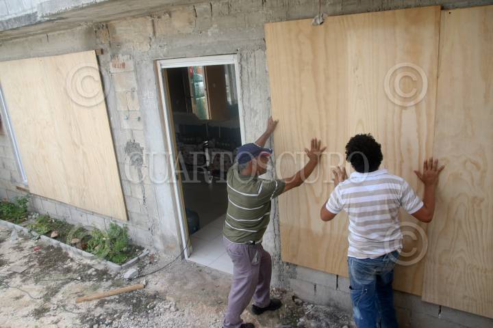 CHETUMAL, QUINTANA ROO, 24SEPTIEMBRE2010.- Habitantes y comerciantes de la capital del estado tapizan ventanales y puertas ante probables afectaciones por efectos de la tormenta Matthew. Pronósticos de lluvias intensas se esperan para la zona sur de esta entidad por lo que las autoridades locales mantienen alerta verde y seguimiento de la evolución del meteoro. FOTO: MARCO POLO GUZMÁN HERNÁNDEZ/CUARTOSCURO.COM