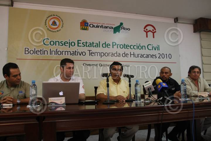 CHETUMAL, QUINTANA ROO, 25SEPTIEMBRE2010.- Felix González Canto, gobernador del estado informo en conferencia de presencia efectuada en Palacio de gobierno que se descarta toda posibilidad de paso del huracán Matthew en territorio quintanarroense y que ya no hay ningún tipo de peligro por lo que levanto la alerta para el estado. FOTO: MARCO POLO GUZMÁN HERNÁNDEZ/CUARTOSCURO.COM