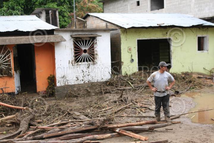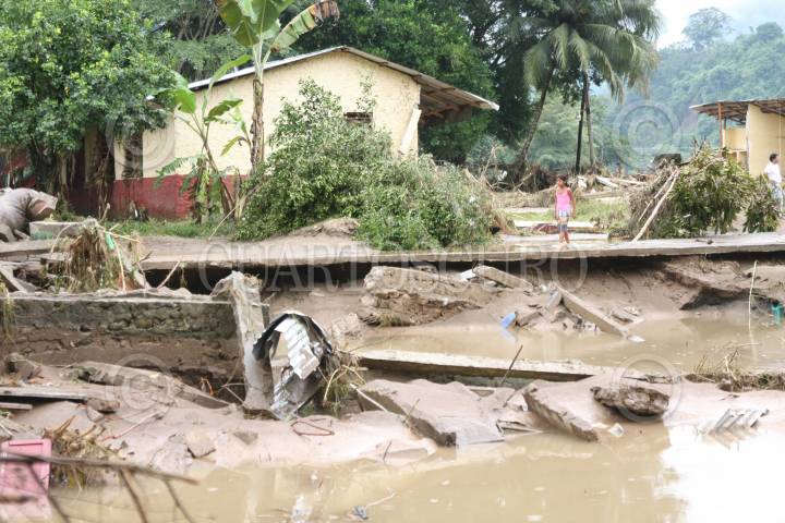 TACOTALPA, TABASCO, 27SEPTIEMBRE2010.- Al menos una decena de casas habitaciones en la villa Oxxolotan fueron destruidas por la furia de las aguas desbordadas del río la Sierra que en su paso llevaba lodo y grandes troncos lo cual es provocado por la tormenta tropical Matthew en su paso por tierras Chocas. Lo anterior trae desolación y tristeza en medio centenar de pobladores de origen Zoque-Chontal quienes se encuentran desprotegidos y sin ayuda de Andrés Granier Melo gobernador del estado. FOTO: MARCO POLO GUZMÁN HERNÁNDEZ/CUARTOSCURO.COM