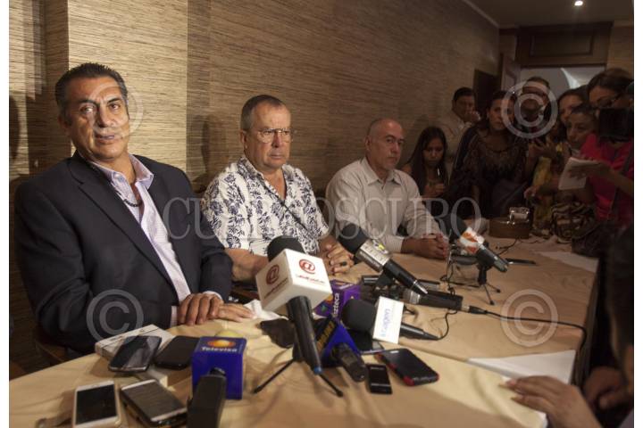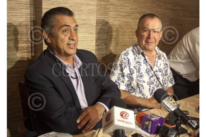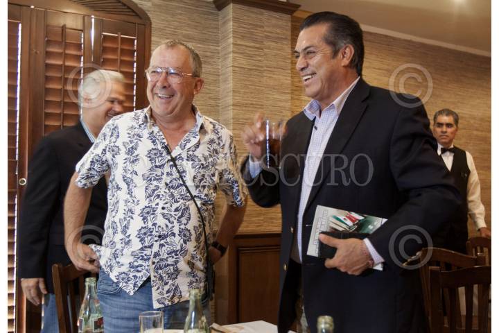 MONTERREY, NUEVO LEÓN, 17JULIO2015.- Por primera vez, tras pasar el periodo de elecciones el gobernador electo del estado de Nuevo León Jaime Rodríguez Calderón “El Bronco” y el alcalde electo del municipio de San Pedro Mauricio Fernández del PAN se reunieron a puerta cerrada en un restaurante en donde abordaron temas de seguridad y coordinación en el mismo. FOTO: GABRIELA PÉREZ MONTIEL / CUARTOSCURO.COM
