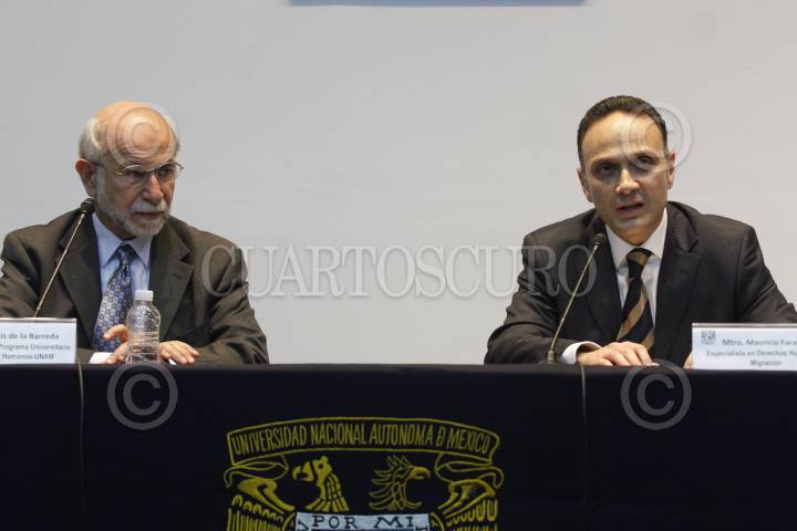 MÉXICO, D.F., 03JULIO2014.- Luis de la Barreda, coordinador del Programa de Derechos Humanos de la UNAM y Mauricio Farah, experto en derechos humanos sobre la migración, quien hablaron sobre sobre los derechos de los migrantes en nuestro país. FOTO: CUARTOSCURO.COM