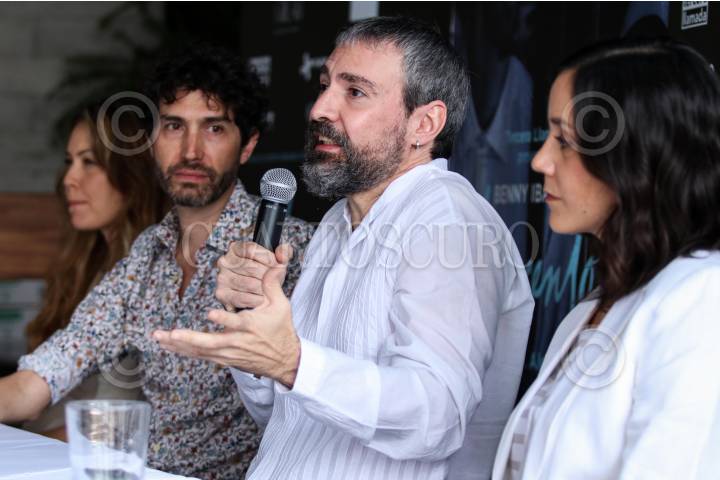 CIUDAD DE MÉXICO, 19AGOSTO2019.- El actor Benny Ibarra,Paula Sánchez Navarrete, productora, el director Mauricio García Lozano, y la productora Ana Bracho Ahumada, durante la conferencia de prensa de la obra Novecento. FOTO: GALO CAÑAS /CUARTOSCURO.COM