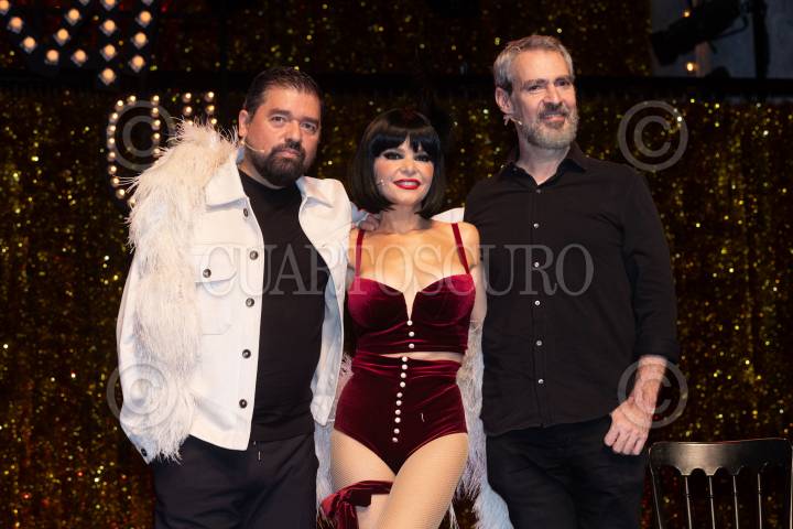 CIUDAD DE MÉXICO, 18SEPTIEMBRE2024. Claudio Carrera y Mauricio García Lozano acompañaron a Itatí Cantoral en su presentación como la nueva Sally Bowles, protagonista del musical "Cabaret", en el Teatro de Los Insurgentes. FOTO: EDGAR NEGRETE LIRA/CUARTOSCURO.COM