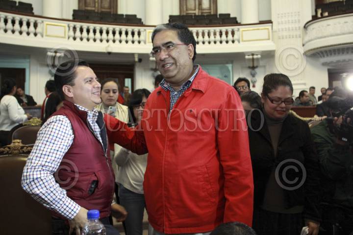 MÉXICO, D.F., 28JUNIO2014.- El pleno de la Asamblea Legislativa del DF aprobó las reformas a la Ley de Proceso Electoral del DF, la cual armoniza las causas de nulidad de elección con la legislación federal, con estos cambios se logra la paridad de genero en la candidaturas a un cargo público en los partidos. En la imagen los diputados Manuel Granados y Mauricio López, dirigente del PRIDF. FOTO: CUARTOSCURO.COM