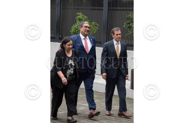 CIUDAD DE MÉXICO, 31AGOSTO2017.- Lorenzo Córdova, consejero presidente del Instituto Nacional Electoral (INE), Mauricio López, director general del Instituto Nacional para la Educación de los Adultos (INEA), y Celia Solís directora académica del INEA, durante la firma del convenio entre éstas dos instituciones, el cual consiste en una campaña para adultos que incluya el dueño de módulos educativos que fomenten valores cívicos y democráticos. FOTO: MARIO JASSO /CUARTOSCURO.COM